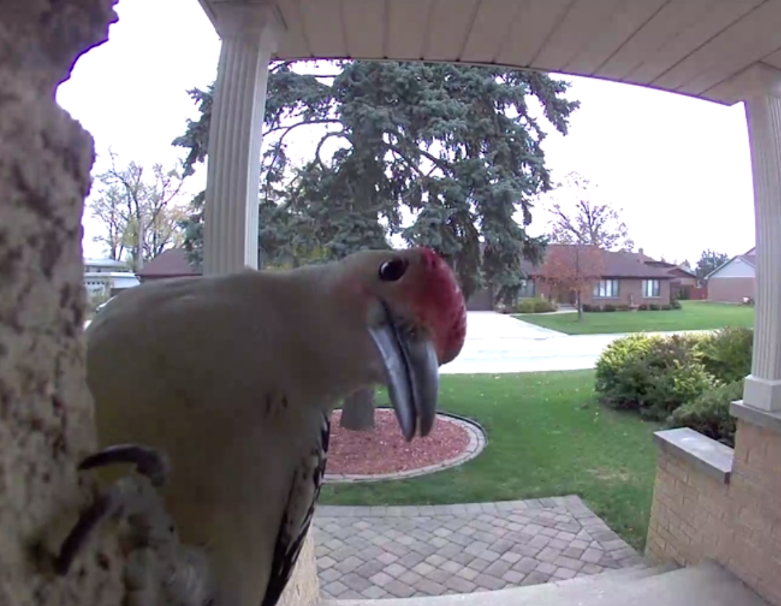 Jim Bruce, of Glenview, sent us this photo of a woodpecker at his doorbell.