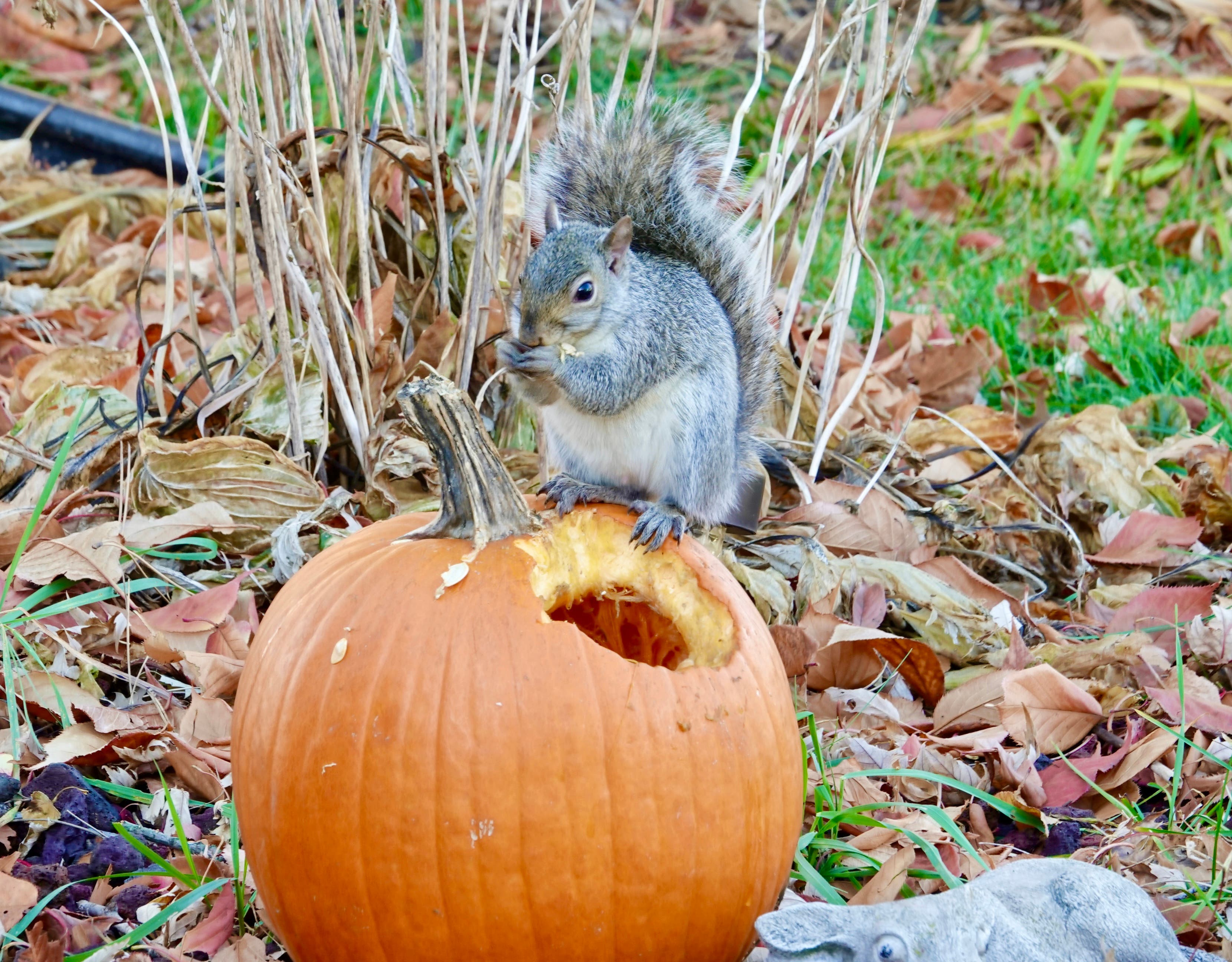Linda Stwora said she caught this squirrel in the act of eating a pumpkin in Orland Park.