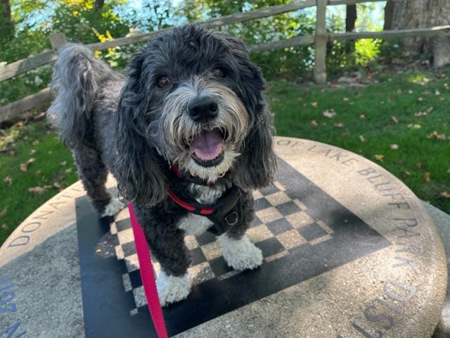 Gayle Janes photographed this dog looking for someone to play in a game of chess at Sunrise Park in Lake Bluff.