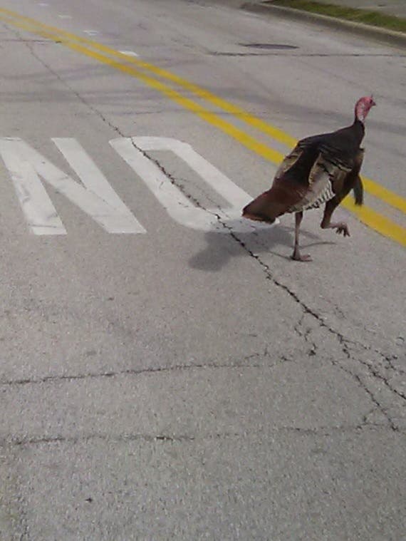 Nete A., of St. Charles, captured this photo of a turkey crossing the street in St. Charles. Nete said, "This 'guy' was trotting down the street until I nudged him onto the sidewalk. It was a many-block chase. Once I provided him with Reiki, he laid down on the grass and took a snooze. Then, I had one!