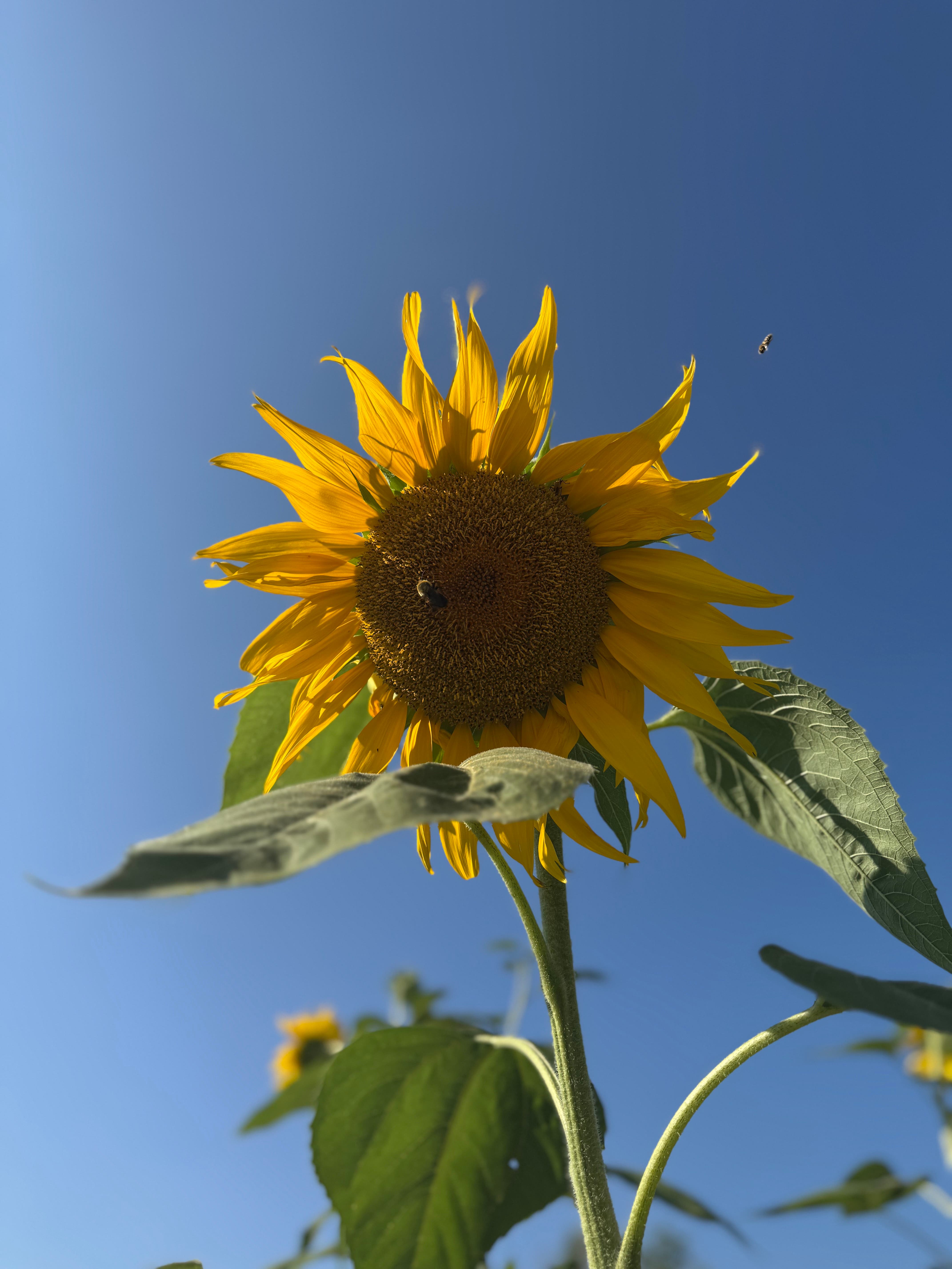 Alexandrea Hollaway saw this sunflower with a bee in the center, while a smaller bee was in midair, in her neighbor's yard in Plainfield and got a great shot.