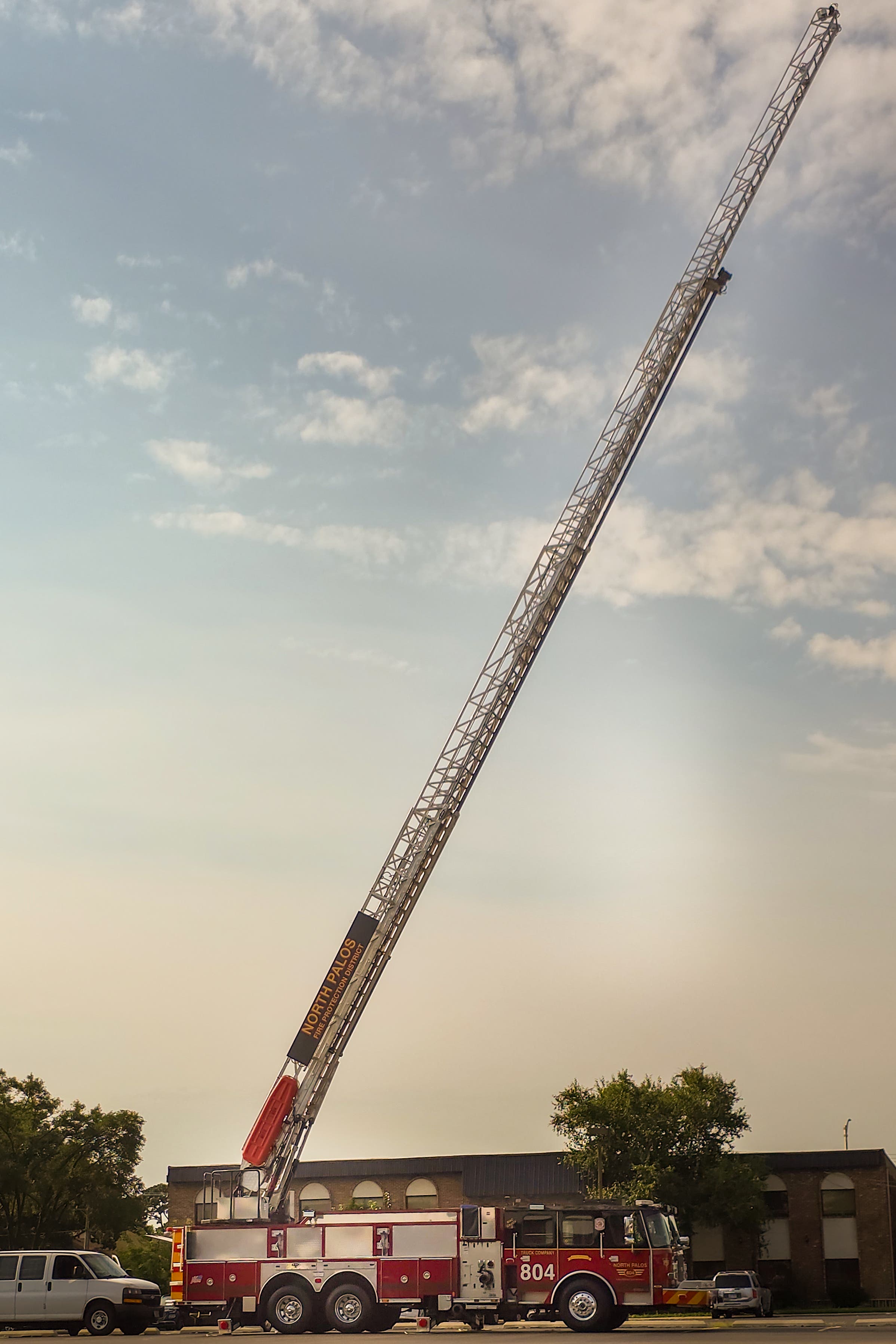 Jeremy Almaguer sent in this photograph he took of truck No. 804 of the North Palos Fire Department. "Seeing their extended ladder up so high early in the morning was awesome enough to see, let alone have time to share on my bike ride to work," he tells us.