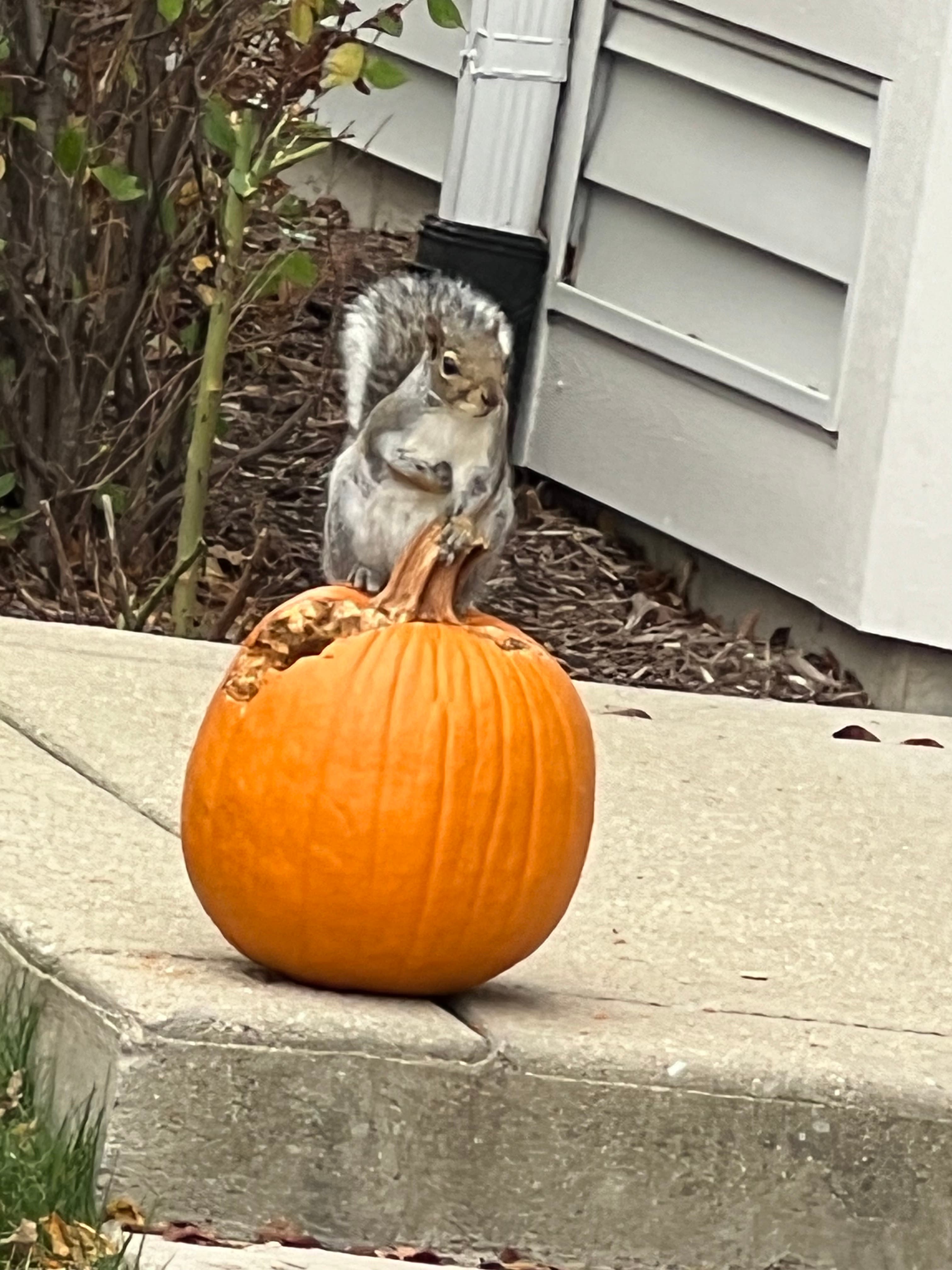 Linda Bilecki, of Crest Hill, says "Snowy the Squirrel" has been coming to her house for a couple of years for peanuts and pumpkin. "She got her name from her white tummy," Bilecki tells us.