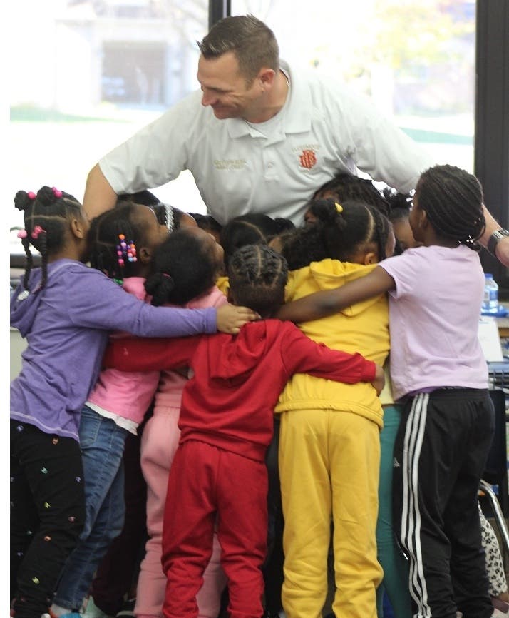 In November, Stephanie Wright photographed Flossmoor Fire Department Assistant Chief Matthew Berk receives a group hug from a kindergarten class earlier this week at Flossmoor Hills Elementary School.