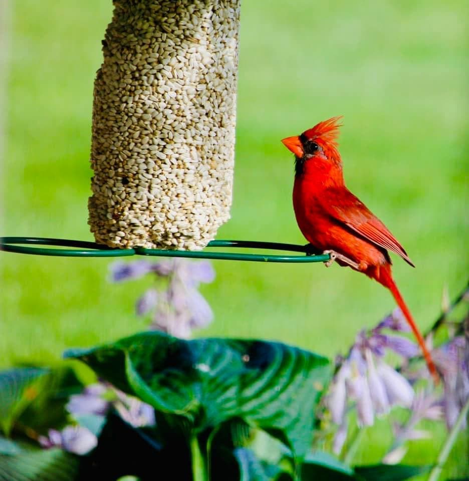 Lynn Wesley, of Tinley Park, said, "hello, handsome," to this beautiful male cardinal.