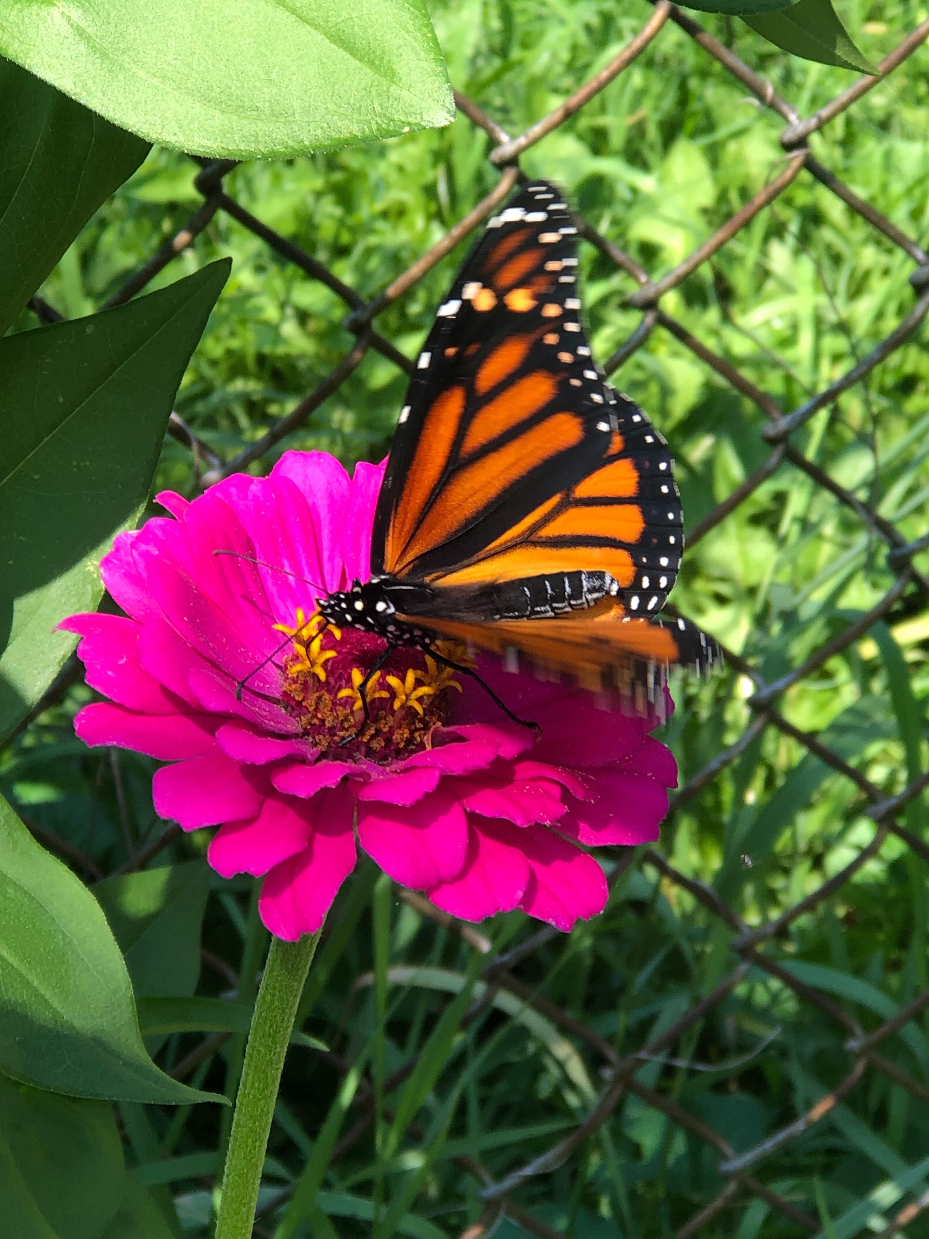 Anne Monahan, of Beverly, took this photograph of a Monarch butterfly in her zinnia garden.
