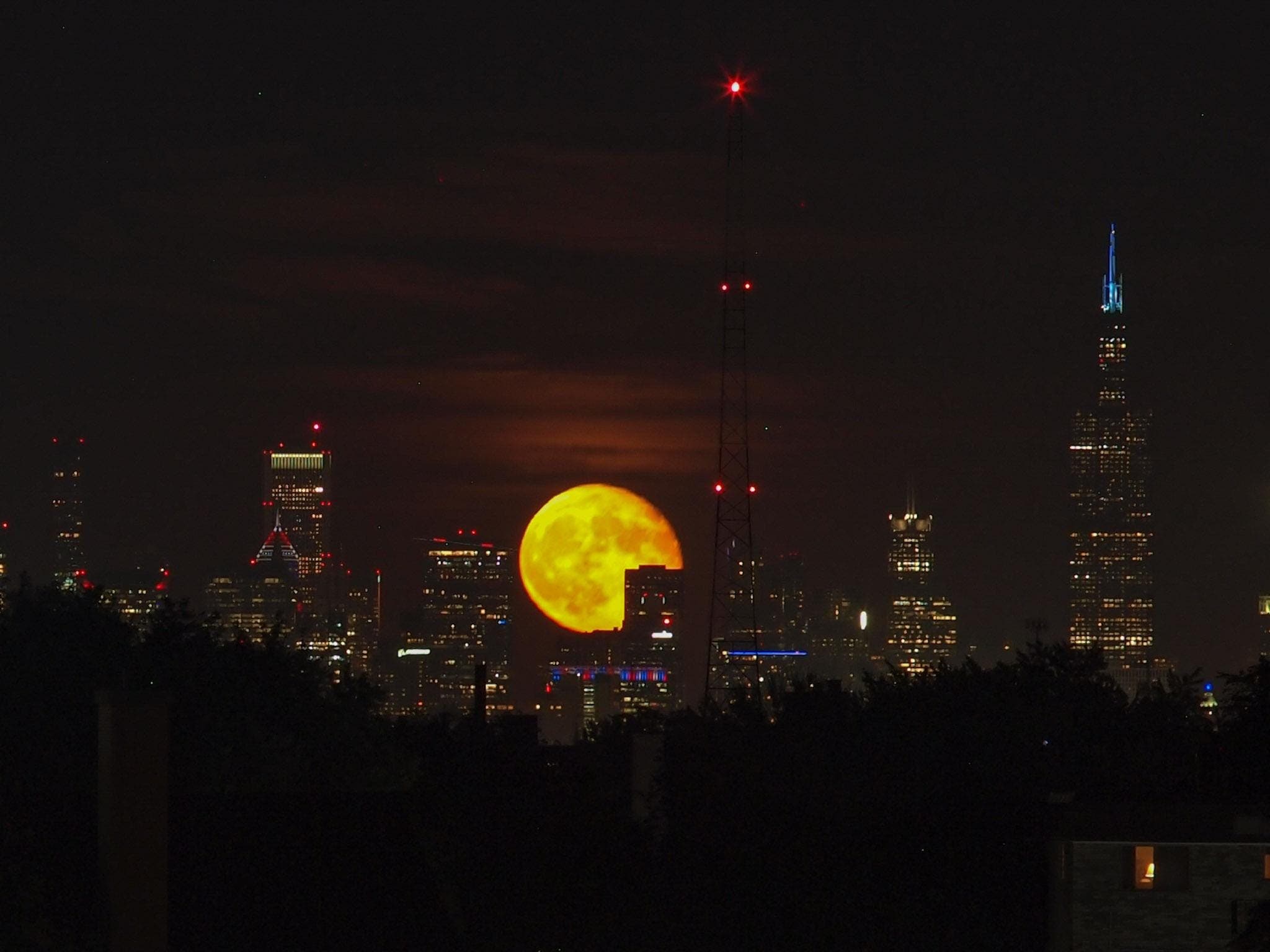 Roseann Madia sent us this photo taken by her son, John Fudacz, of the Chicago skyline with the moon as a backdrop from their balcony in Forest Park.