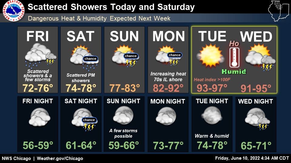 ILLINOIS — Thunderstorms are possible both Saturday and Sunday, before dangerous heat and humidity is expected for the work week, according to the National Weather Service.