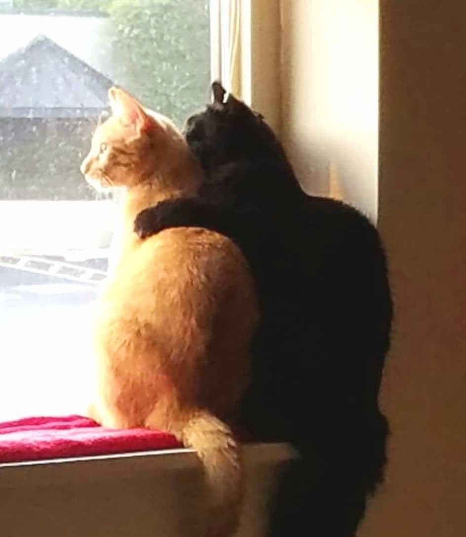 Ivon Zepeda photographed these two BFFs, Mango and Spanky, watching the rain in Island Lake.