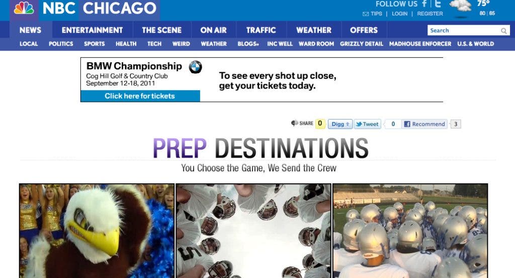 Prep Destination of the Week is a weekly segment of NBC 5 that highlights football games from local high schools. The Chicago TV station will be at the game this Friday and will air highlights during its Sports Sunday segment.