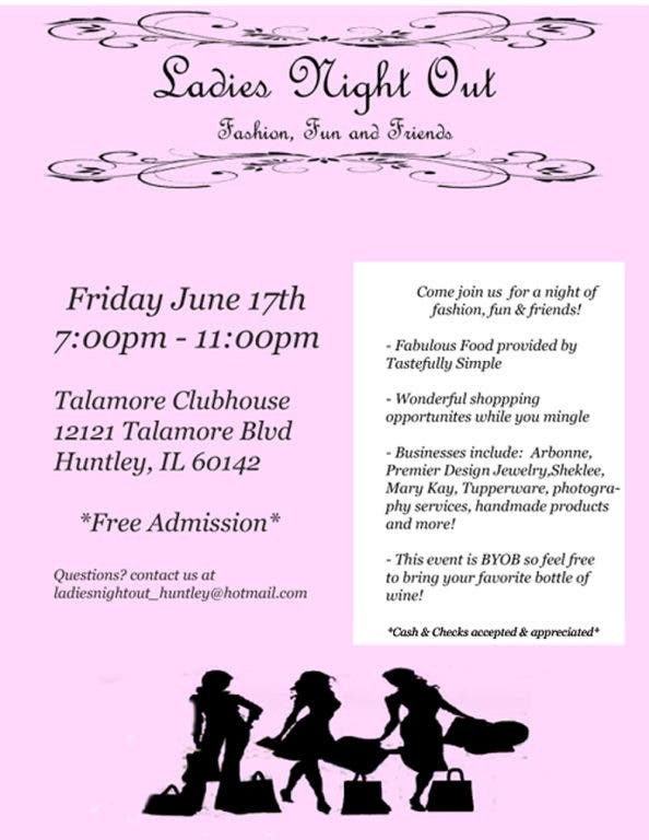 Questions? contact us at ladiesnightout_huntley@hotmail.com