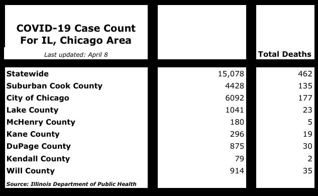 Illinois Coronavirus Update April 8: 15,078 Cases; 462 Deaths