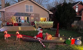 Santa and Flamingos, 637 Rawson Bridge Road, Cary – Santa is giving his reindeer a break this year in Jennifer Thompson’s delightful display. “Since we live on the Fox River, we thought Santa and flamingos would be fun.”