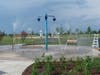 The splash pad was installed in July 2009. It has an activation button so users can turn on the water when needed. Although some water collects while children are playing on the pad, it is not a pool and is open to all ages.
