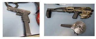 The three were taken into custody through the combined efforts of Alsip, Midlothian, Country Club Hills, Markham and Posen police. The Audi had been reported stolen in Hodgkins. Officers found two pistols equipped with switches, an illegal feature that makes guns fully automatic, police said.