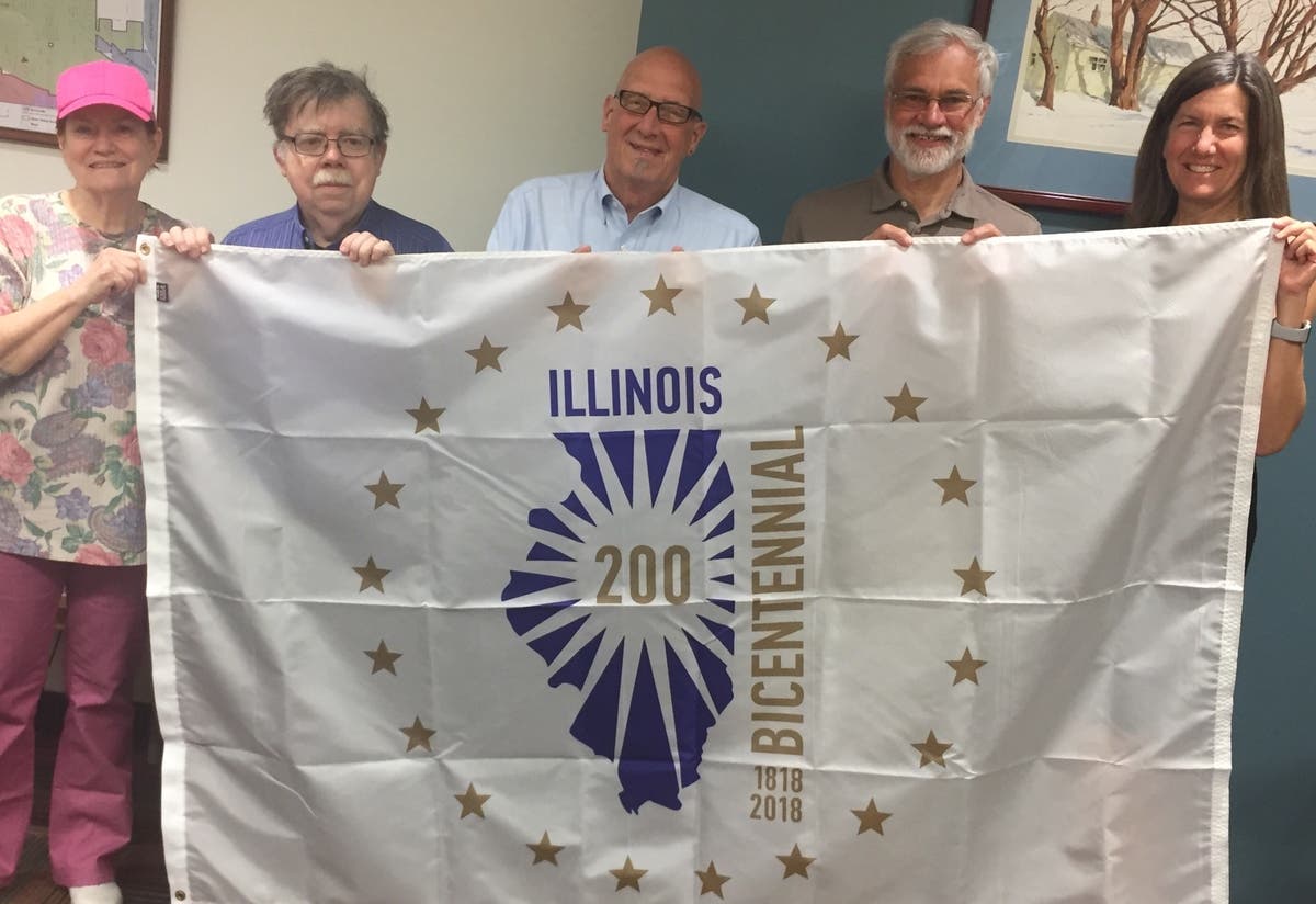The Alsip-Merrionette Park Public Library District Board of Trustees was recently happy to welcome Illinois State Representative Fran Hurley and accept an official Illinois Bicentennial flag on behalf of the community.