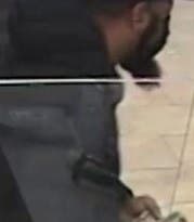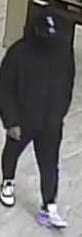 He is described as Black, between 6-foot-1 and 6-foot-3, in his early 20s, with a muscular build. He was wearing a black flat-billed hat with a white "White Sox" logo on the front, a black facemask, a black jacket, black pants, and white sneakers with black details.