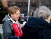 Jennifer Bishop-Jenkins, Director at Illinois Victims, spoke to the crowd of 100 about the murder of her sister and brother-in-law, and their unborn child, in a Chicago suburb. Their killer was 16. She encouraged listeners to write letters and make phone calls to their representatives and demand that they support expanded background checks for gun sales. This includes the sale of guns at gun shows and online, which do not require background checks at this time.