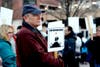 During the reading passers-by, across the street from the gathering, some with small children, stopped and turned to listen. Others expressed their support as candles flickered and participants raised signs, some with the refrain “We Have Not Forgotten.”