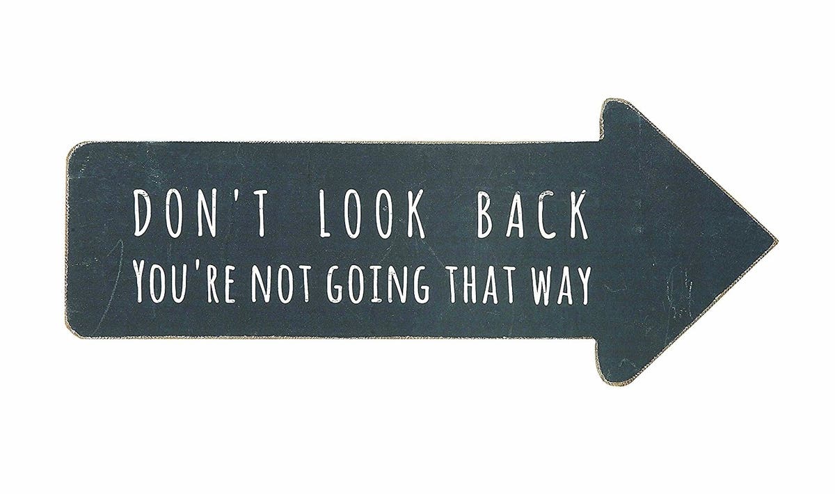 Creative Co-Op Wood Arrow Shape "Don't Look Back" Wall Decor, $8.11