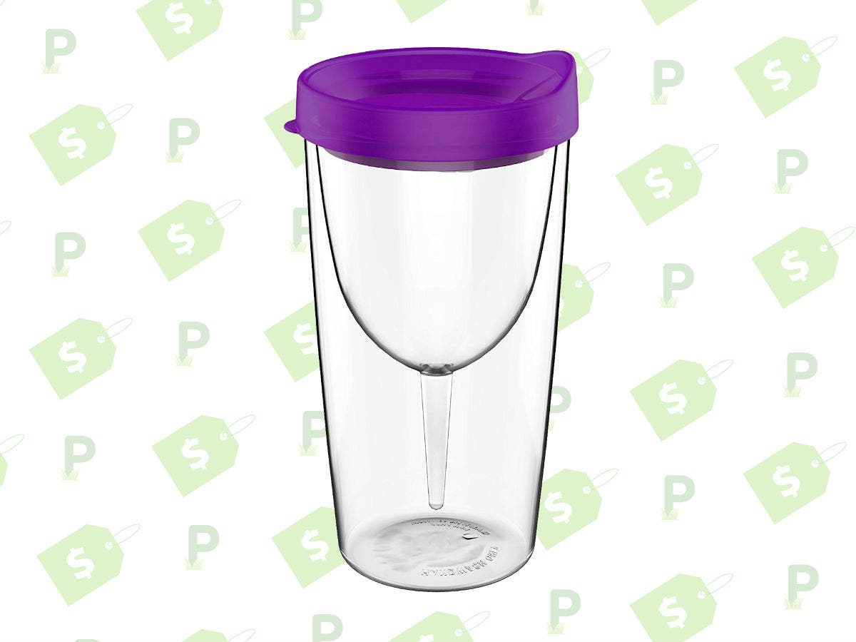 This is the adult version of a sippy cup! If you're prone to spills or broken glass, this 10-ounce BPA-free plastic tumbler with a lid (pictured above) might just be a match for you.