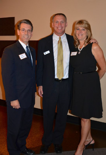 Photo caption: Left to right: Arlington Heights Mayor Tom Hayes, Michael Rohrwasser and Debbie Rohrwasser at the 25th Anniversary Open House at Vantage Financial Partners Limited in Arlington Heights.