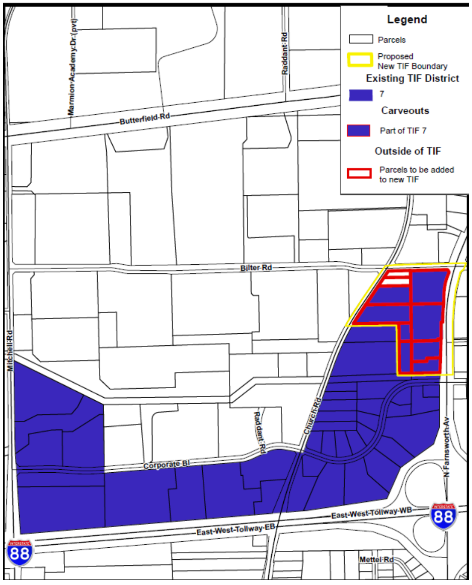 The boundary for the new district will extend the current one to Bilter Road to the north, Farnsworth Avenue to the east, Church Road to the west and Corporate Boulevard to the south, City Council voted on Oct. 24.