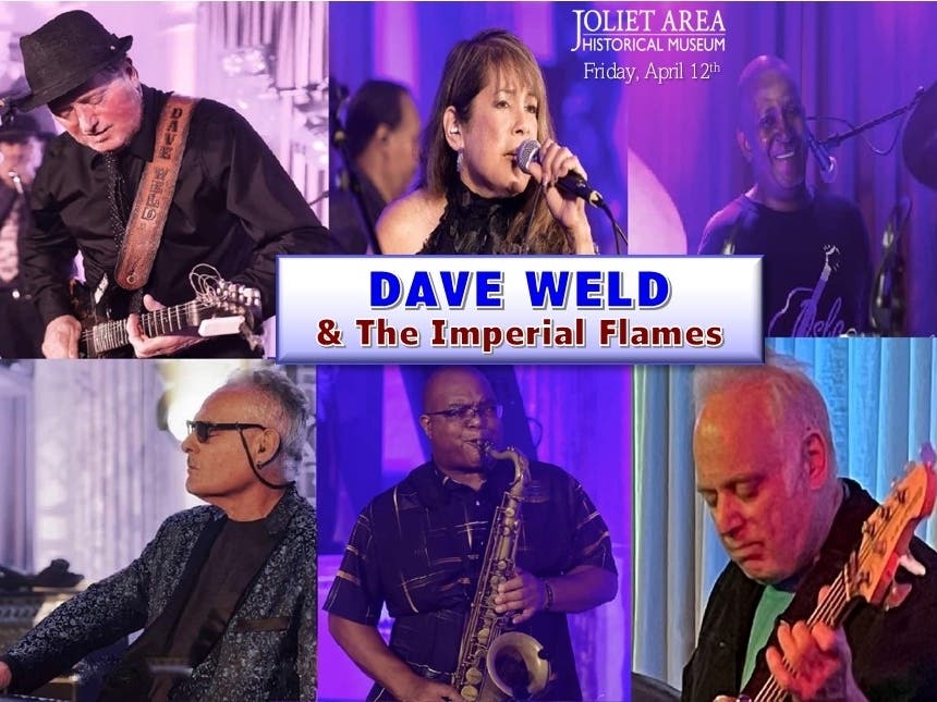 Dave Weld & The Imperial Flames perform a live concert in the Joliet Area Historical Museum's Indoor Auditorium Theater venue on Friday, April 12th at 7pm (doors open 6:15pm).