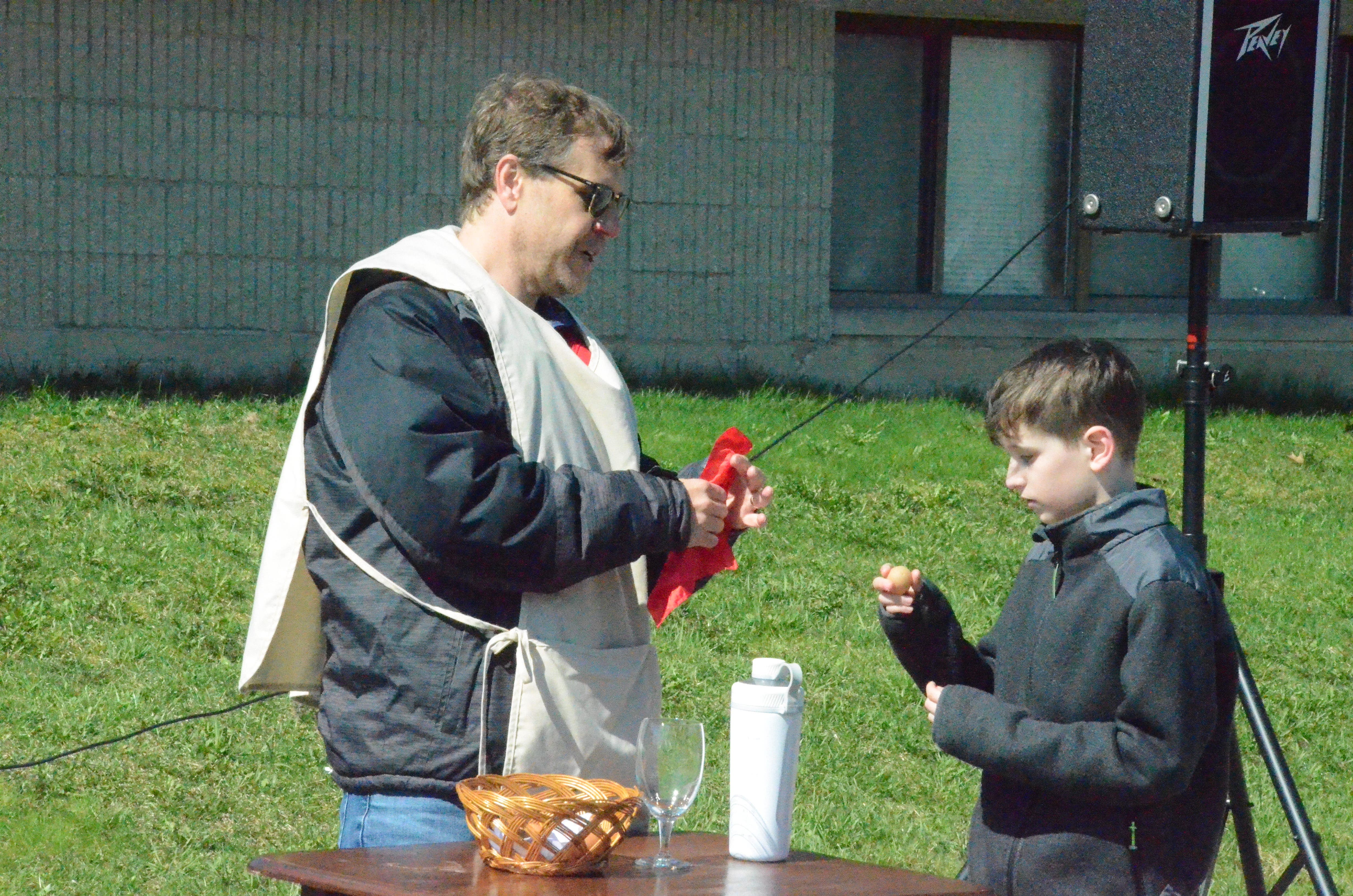 The egg hunt began with Rev. Matt Mull, senior pastor, welcoming the roughly 175 attendees and recounting the biblical Easter story. At one point, his microphone failed, but he brought out a megaphone to continue his introduction, according to a news release.