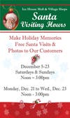 As a courtesy to our shoppers, The Ice House Mall will provide Santa photos and visits to families during the holiday season. When visiting Santa, all children receive a free holiday gift and can bring letters to Santa’s Mailbox to the North Pole! For more holiday events and information go to www.icehousemall.com or call 847-381-6661.