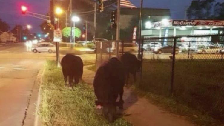 Six full grown cattle stopped traffic Tuesday night after breaking free from their corral at 115th Street and Pulaski Road.