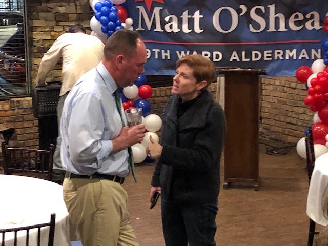 O’Shea, 53, faced retired Chicago police sergeant Mike Cummings, and computer consultant Tim Noonan. The alderman built a wide lead over the two challengers early in the evening. At the end of the evening, unofficial vote tallies were: