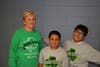 Caption: 1) Abby Kovac dots her nose with sunscreen at the Johnson Center’s demonstration on sun safety conducted by Nancy Donovan. 2) Samuel Morales Aguilera, 11, and Donnie Maya, 8, of Oak Lawn, with Nancy Donovan of March4Meg quiz.