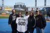 5. Laura is presented a special box with season tickets from White Sox player Adam Eaton, commemorating her streak of 600 consecutive home games attended. A custom "600" jersey was also included.