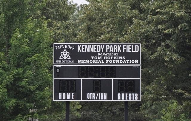 The scoreboard at Kennedy Park was purchased using the funds raised in the first Papa Hops tournament in 2014.