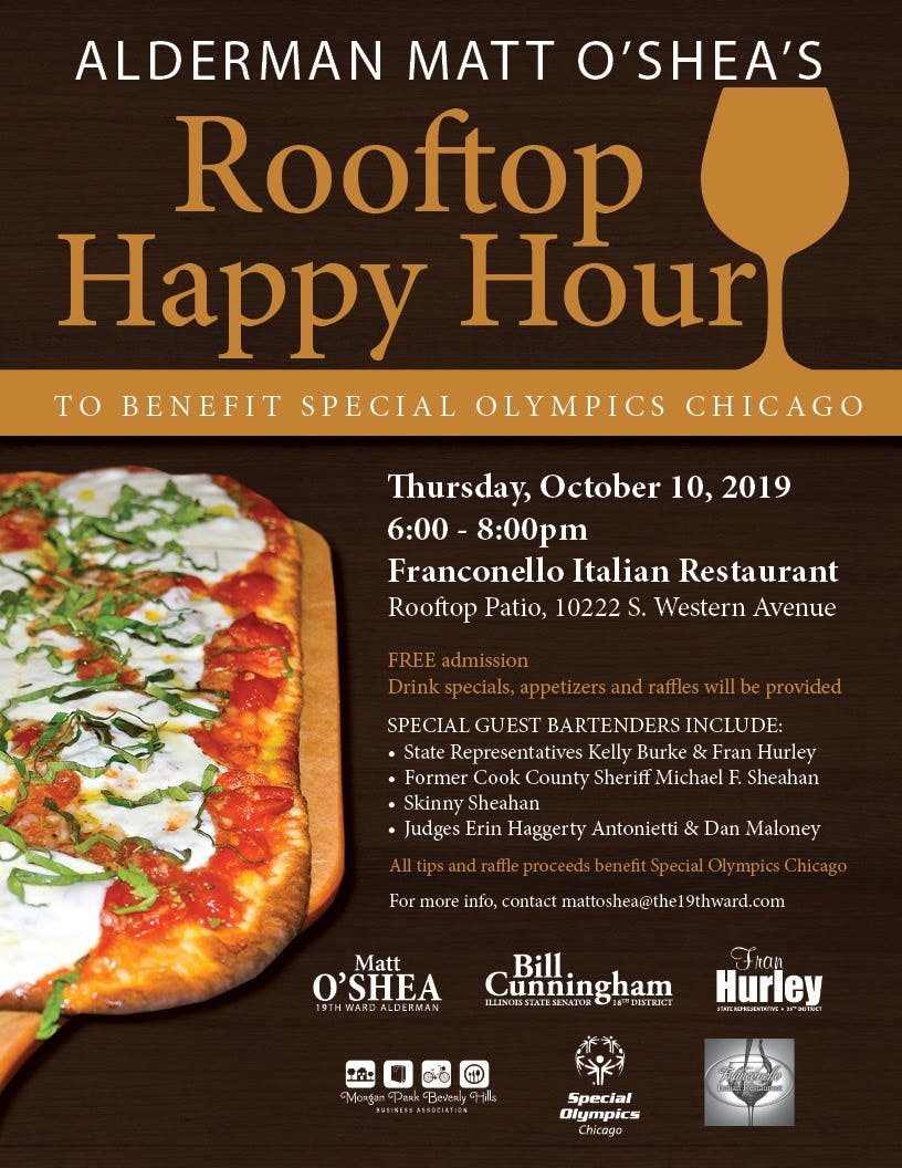 The happy hour will go from 6-8 p.m. on Thursday, Oct. 10 at Franconello, 10222 S. Western Ave.