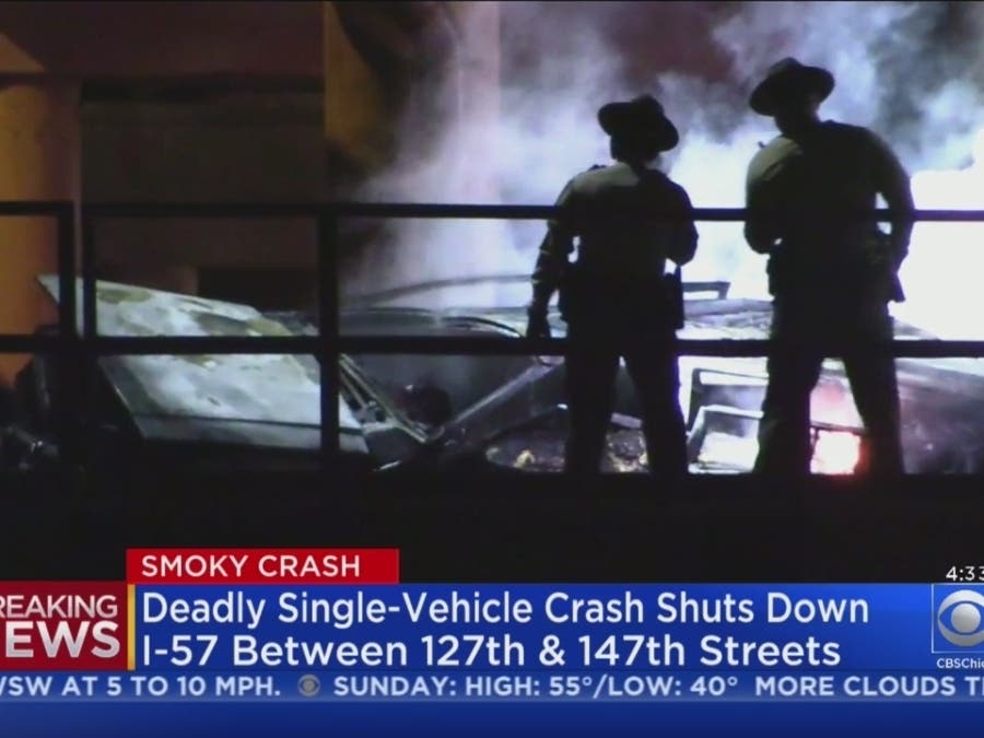 1 Dead After Car Goes Off Expressway Onto Tracks, Catches Fire On I-57