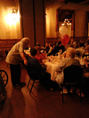 At the sock hop, guests were treated to a lunch of salad, mostaccioli, garlic bread and mouth-watering root beer floats for dessert. Staffers from the 19th Ward gamely dressed up in period clothing.