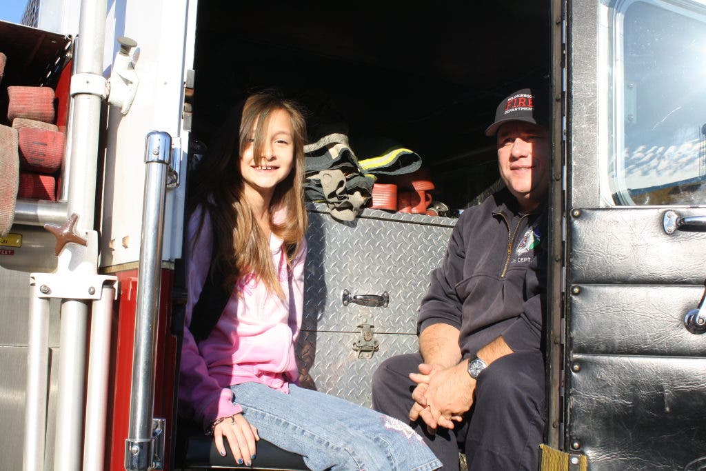 As grand prize winner, Emily Saenz received a ride to school on a fire truck Tuesday morning.