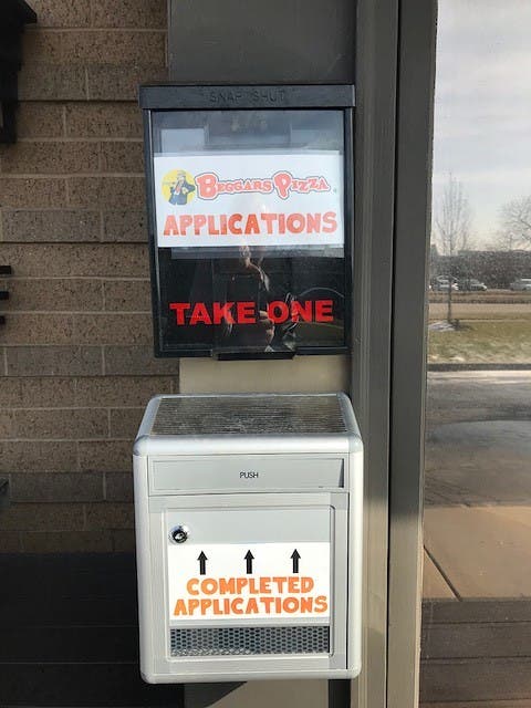 Last week, Patch visited the site and saw several electricians working inside and outside at the business. There is also a drop box near the front door to pick up job applications and return them.