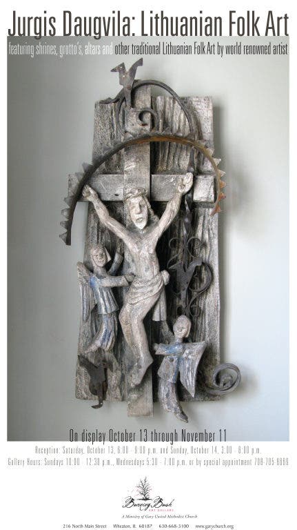 The Burning Bush Art Gallery in Wheaton, Illinois invites the community to be challenged and inspired through the works in its upcoming show: "Jurgis Daugvila: Lithuanian Folk Art". The show will feature shrines, grottos, altars and many other works by this world renowned artist.