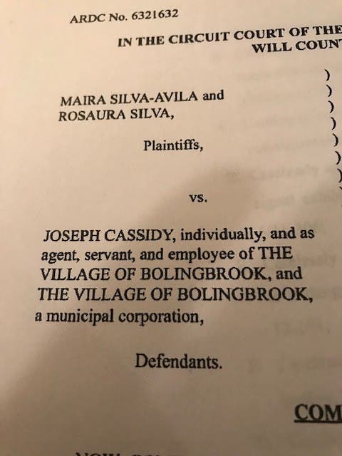 The Bolingbrook officer's actions left Silva-Avila, the driver, having "suffered great pain and anguish, both in mind and body .... plaintiff further expended and became liable ... for large sums of money for medical care and services endeavoring to become healed and cured of said injuries," the lawsuit states.