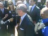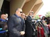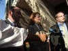 A large crowd heckled Brodsky and the other attorneys on the defense team while they spoke to the media.