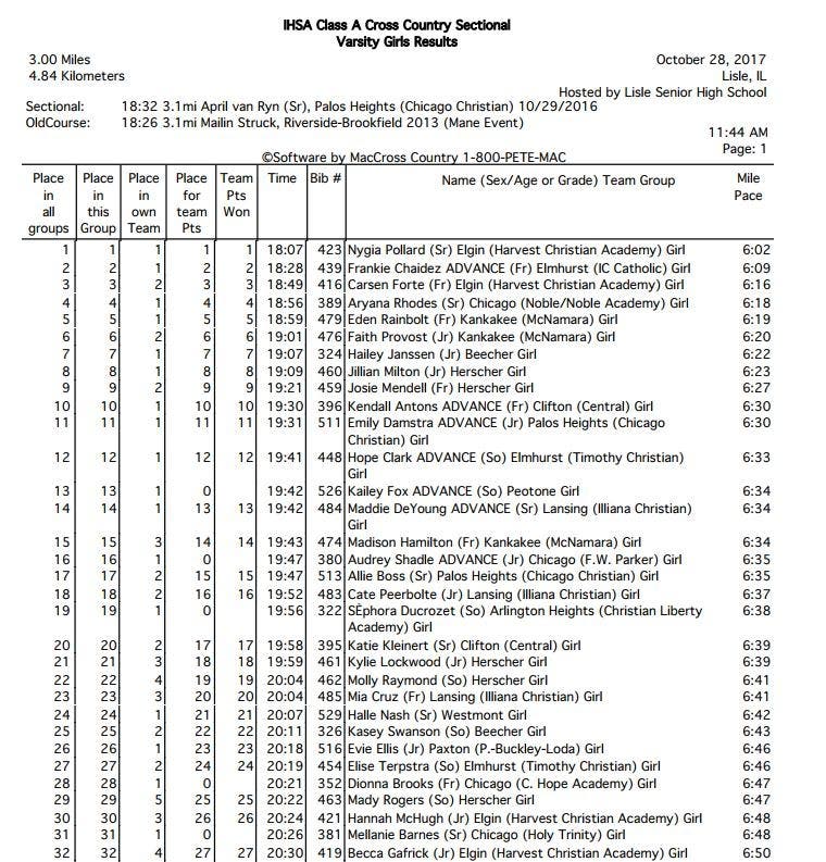 GIRLS CROSS COUNTRY -- Mellanie Barnes: NOTE: pics above from IHSA Lisle 1A regional.