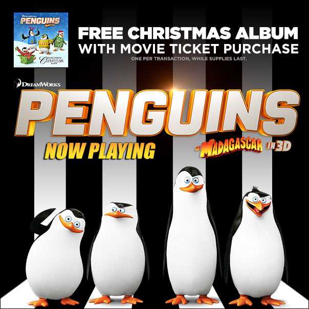 As a special holiday treat, guests who purchase tickets to “Penguins of Madagascar” November 26 - 30 will get a FREE Christmas album download (one per transaction, while supplies last).