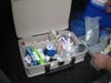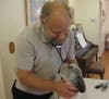 Shechter travels with a portable examination table and several boxes containing supplies, including a stethoscope, clippers, scissors, nail trimmers, ear cleaning solution, and equipment for laboratory work. He does not have an X-ray machine or ultrasound equipment because he does not want to bring radiation into his clients’ homes.
