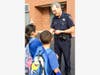 Officers from the Wheeling Police Department visited Tarkington before school, after school, and during lunch, to share tips with students about travel safety. Officer Scott Laverd talked about the importance of wearing helmets when rollerblading, biking and using a skateboard or scooter, and showed students how to properly wear and adjust helmets.