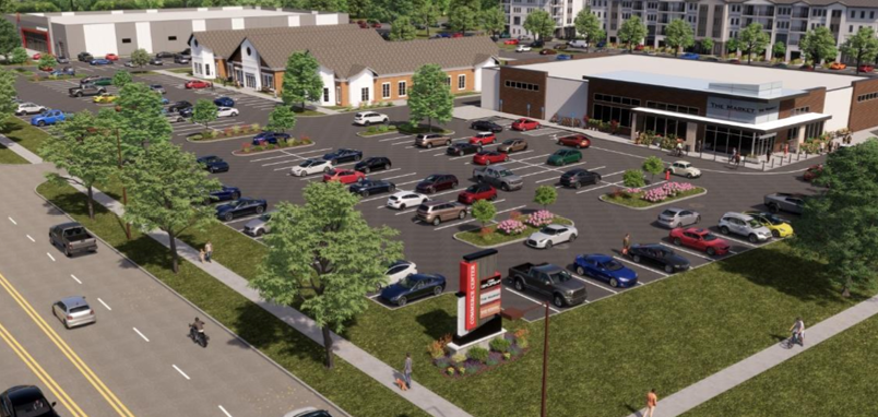 For the car dealership, Shorewood is proposing to demolish the two existing buildings on the east side of the site and construct the new Tesla franchise and a service/repair center. The retail tenant spaces would be located on the western part of the site.