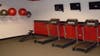 Upon entering the facility, visitors are greeted by a bank of 60 boxing bags, which take up the majority of gym. Treadmills, weights, smaller boxing bags, the boxing ring and merchandise racks form the perimeter. The open space is decked out in Title Boxing Club’s corporate black and red; even the ceiling is painted black.
