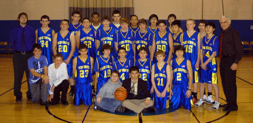 Both of Twin Groves Middle School's eighth-grade boys basketball teams met their goals this season. For the first time in Patriot Middle School Conference basketball history, two Twin Groves teams – Kolts Team Blue and Kolts Team Gold – emerged as conference champions.